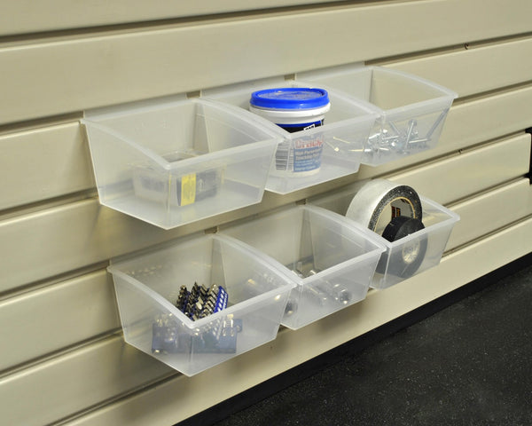 Everything we sell that attaches to slatwall panels. Baskets, Hooks, Shelves, Sports Storage, Tool Storage, Storage Bins.